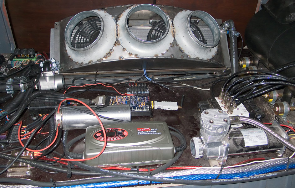 Isommat hommat ilmaletkujen veto, jarrujen putket ja ilmaus. Etupenkkien kiinnikkeet ja "startti"moottorin asennus takakonttiin.
