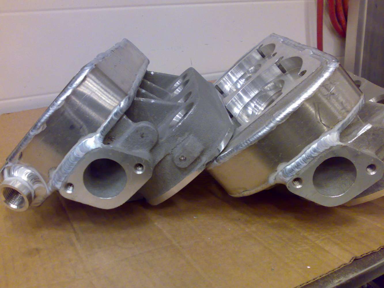 Started manufacturing intake manifolds. Here is plenum with velocity stacks. Material is stainless steel.