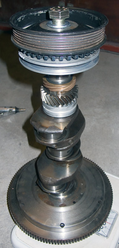 Here is crankshaft ready to balancing. Belt pulley for Eaton is added and also trigger wheel for Megasquirt.