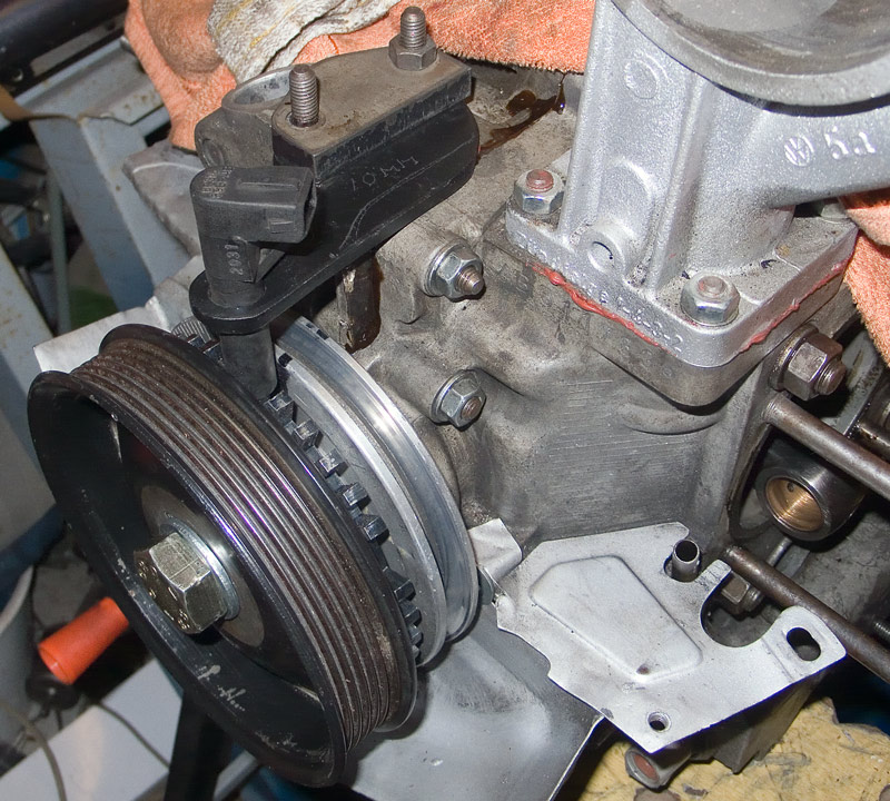 Block assembled and pulley in own place. Here is planning bracket for vr-sensor.